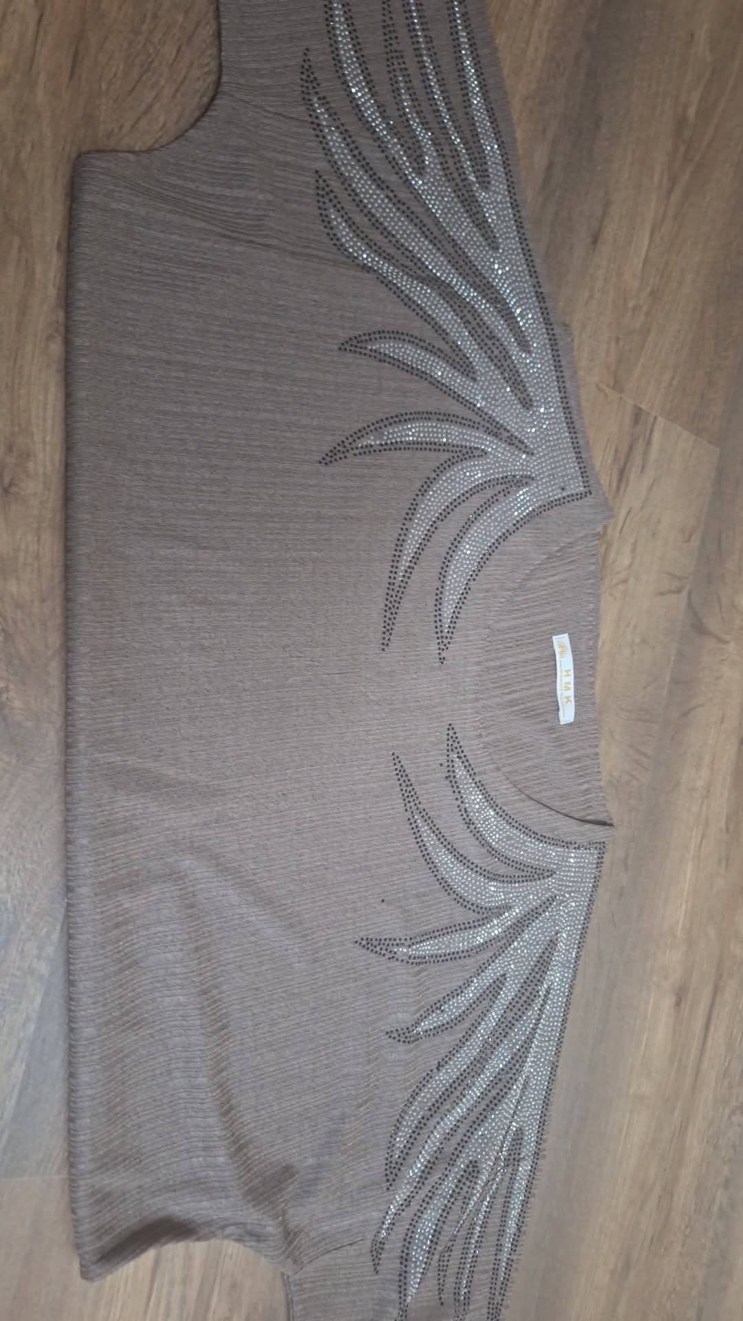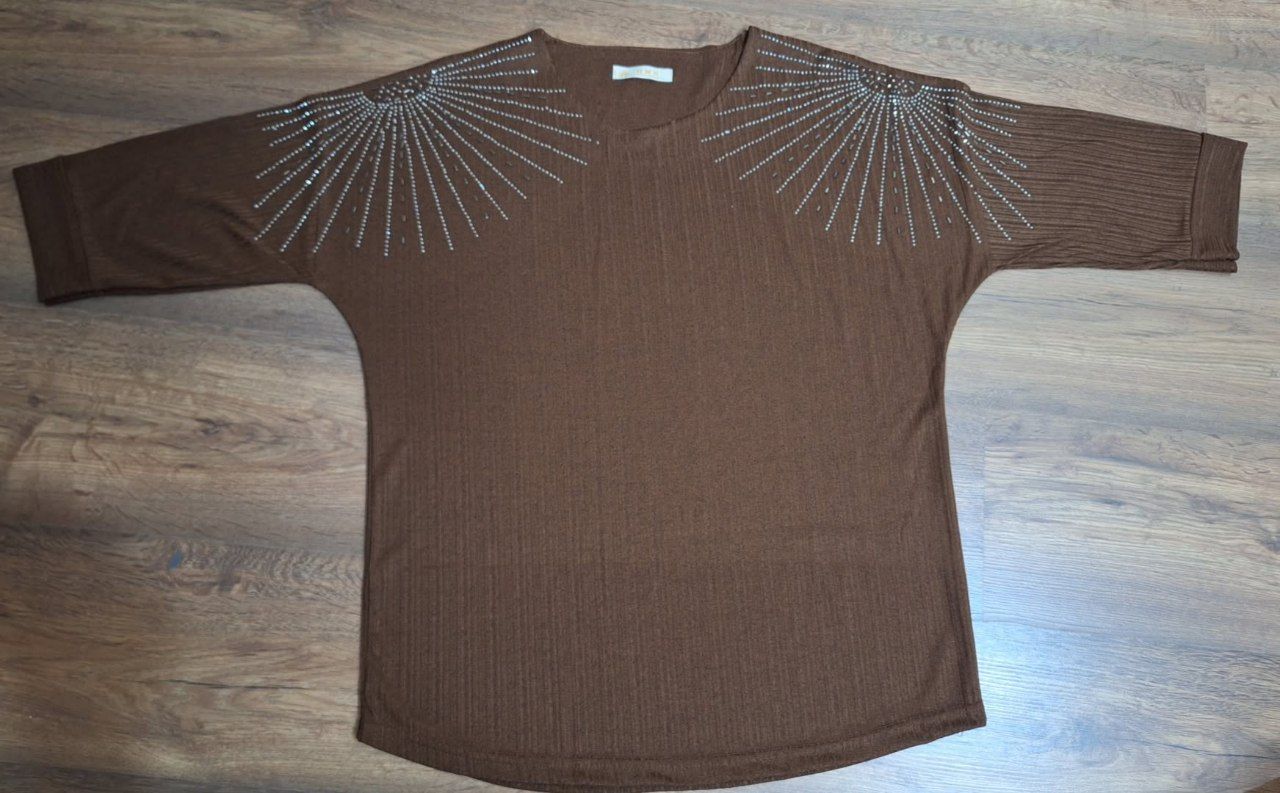 بلوز نگین کوب شده، آستین سه ربع، جنس کریشه، سبک و نرم و زیبا